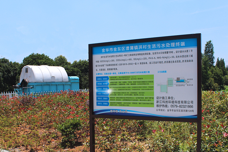 金華市澧浦鎮(zhèn)洪村生活污水處理工藝采用3D-RBC立體結構生物轉盤處理設備,生活污水日處理量100噸,